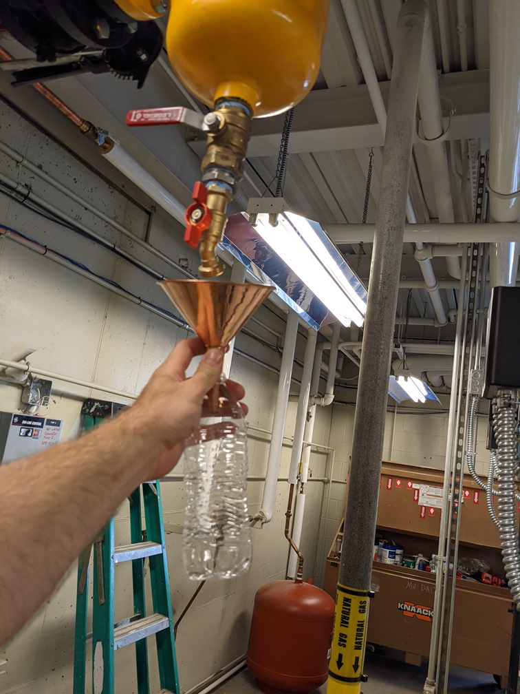 I used my copper funnel at this Air Force base to monitor the quality of the heating water