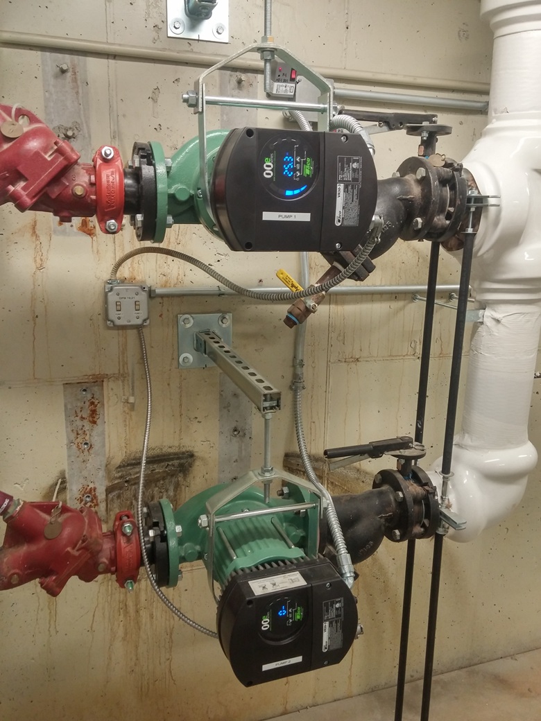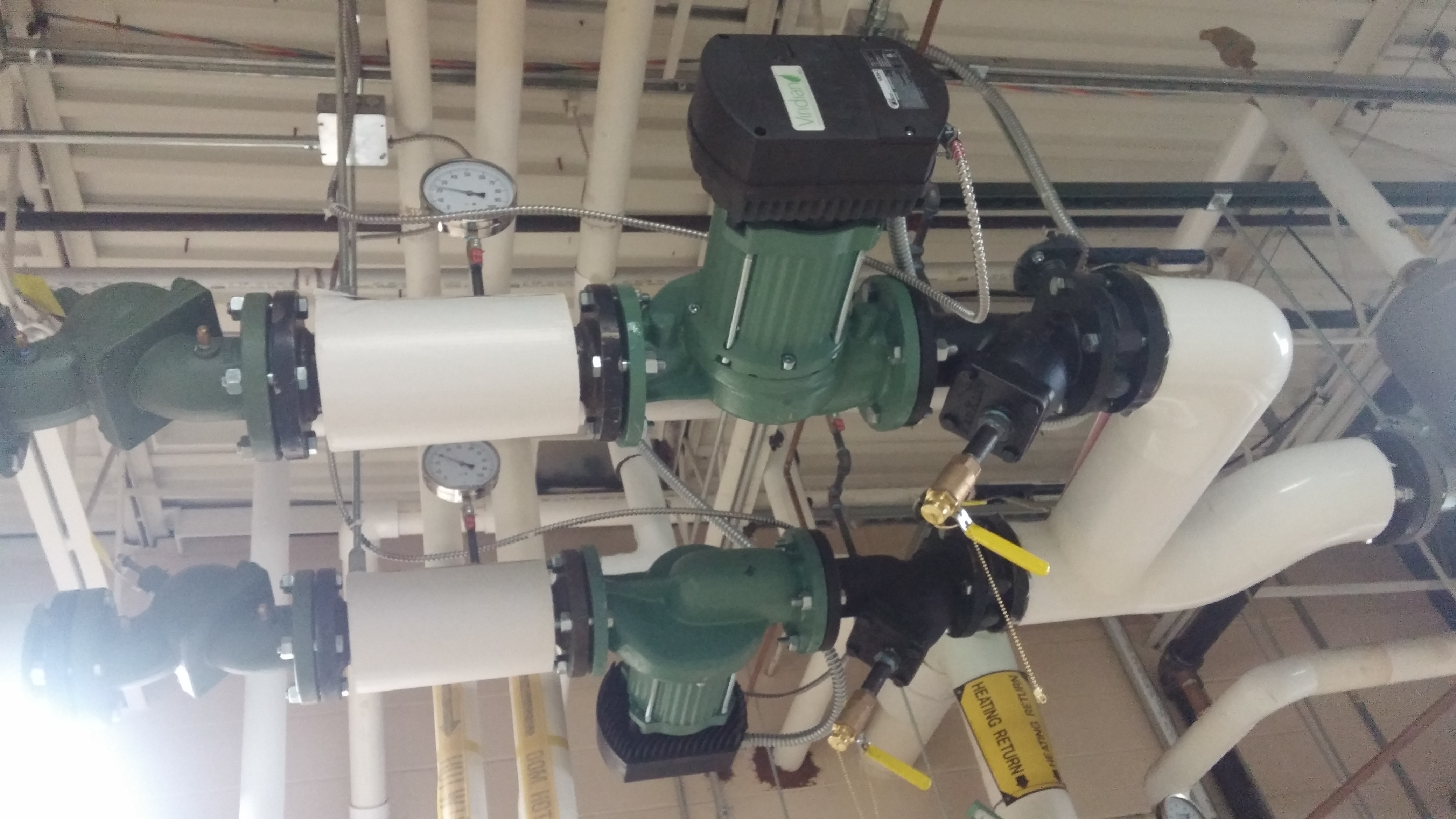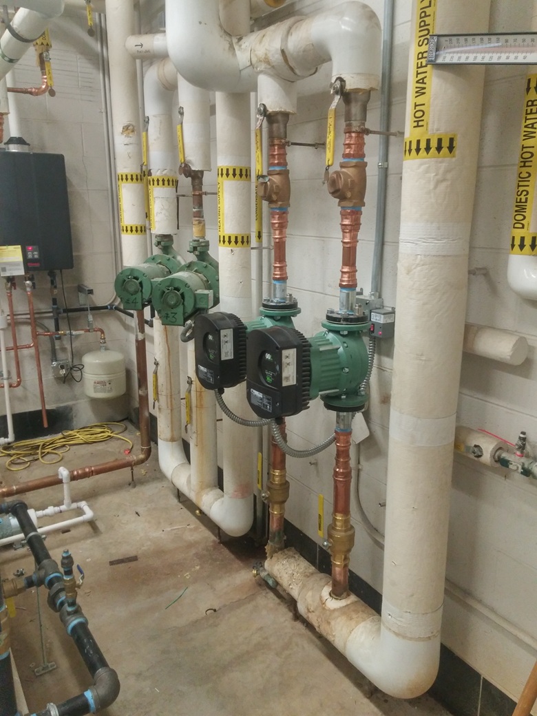 This array of ECM pumps I designed allowed us to slow down the flow to match the needs of the condensing boilers